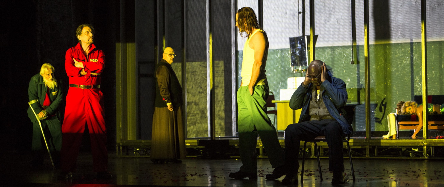 Bühnenbildnerin Małgorzata Szczęśniak schuf eine kühle Kulisse mit einer heruntergekommenen Turnhalle, die von einem Gitterkäfig als Aufnahmesektor flankiert ist, der mobil verschoben werden kann und der auch als Bühne für die von den Sträflingen produzierte Theateraufführung dienen kann. Eine Aufführung, die wie eine Show im Affenkäfig wirkt und wenigstens Spuren von Beklemmung auslöst.