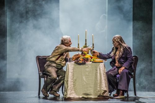 Sein Ziehvater Mime, Siegfried an Körpergröße fast überlegen, wirkt eher wie ein Überbleibsel der Alt-68-er Generation. Doch sein pseudointellektuelles Gehabe soll nicht über sein eigentliches Ziel hinwegdeuten, Fafner zu töten, um wieder in den Besitz des Rheingolds und des Ringes zu gelangen. Dabei ist ihm jedes Mittel recht. Das quasi im Prolog die sterbende Sieglinde gezeigt wird, die von Mime brutal getötet wird, und ihr das Kind aus dem Bauch geschnitten wird, ist eine von den vielen grenzwertigen Szenen, die einfach am Werk vorbei erzählt werden. Nirgendwo in der Literatur findet sich ein Hinweis darauf, dass Mime Sieglinde getötet hat. Auch die Darstellung des Waldvogels, hier so ein wenig an Ingrid Steeger in Klimbim erinnernd, ist sehr weit hergeholt. Der Waldvogel als eigenständige Persönlichkeit, der den Ablauf der Geschichte verändern will, ist nicht nachvollziehbar. Wenn überhaupt, ist der Vogel eine Marionette des Wotan-Wanderers, der ihn steuert, um Siegfried genau den Weg gehen zu lassen, den er ihm vorgezeichnet hat, aber er selbst darf nicht mehr eingreifen. Das der Waldvogel im dritten Aufzug plötzlich wieder auftaucht, sich auf Wotan stürzt, um Siegfried vor ihm zu schützen, ist schon sehr kurios. Folgerichtig tötet Wotan den lästigen Vogel.