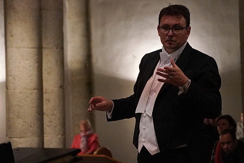 Da kann man die Freude gut verstehen, die in den Grußworten des Musika­li­schen Leiters von Les Lumières, Michel Rychlinski, mitschwingt. Denn er hat ein schönes Programm vorbe­reitet und ist zu diesem Zeitpunkt fest davon überzeugt, dass es auch gelingen wird. Ehe das Deutsche Requiem beginnt, lädt Rychlinski zu einer Reise nach Armenien ein. Der 27-köpfige Kammerchor von Les Lumières hat tatsächlich zwei Lieder von Komitas einstu­diert. Komitas Vardapet war ein armeni­scher Priester und musika­li­scher Generalist, der heute als Begründer der modernen klassi­schen Musik Armeniens gilt. Möglich war die Einstu­dierung, weil an der Aufführung die gebürtige Armenierin Naré Karoyan beteiligt ist und den Chor zuvor mit einer „Lautschrift“ versorgt hat. Eisern schweigt sie zur sprach­lichen Qualität des Vortrags, und es darf bezweifelt werden, ob irgendein Armenier versteht, was da gesungen wird, aber nach dem Konzert erzählt sie, dass sie von der Leistung des Chors stark gerührt war.