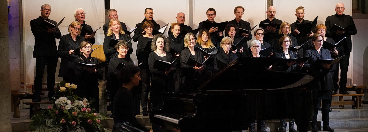 Was klingt wie der Beginn eines Grusel­krimis, spielt sich an einem Konzert­abend vor der Basilika des Klosters Knecht­s­teden ab, in der gerade noch der Gottes­dienst zu Ende geht. Später wird unser Protagonist sich in die lange Reihe der Wartenden vor dem Seiten­eingang einordnen, der Regis­trierung unter­ziehen und schließlich in einer der Kirchen­bänke verschwinden, um der Musik zu lauschen, anstatt den Kampf gegen das Böse aufzu­nehmen. Das braucht er auch nicht, denn an diesem Abend gibt es das Böse nicht. Zumindest nicht sichtbar im Kirchenraum. Statt­dessen hat das Ensemble Les Lumières einge­laden, an der Aufführung von Ein deutsches Requiem von Johannes Brahms teilzu­nehmen. Chöre haben es in dieser Zeit vergleichs­weise gut. Wenn sie zur Aufführung rufen, kommen Kirch­gänger, Bekannte und Famili­en­an­ge­hörige und bilden schon mal eine Basis, die die Kirche quasi von selbst füllt. So auch an diesem Abend, und das ist wichtig. Denn erst in einer gut besuchten Kirche kann sich die richtige Akustik entfalten. Und darum brauchen sich die Musiker nun keine Gedanken mehr zu machen.