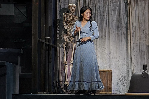 Das zweite Bild, das auf dem wuseligen Weihnachtsmarkt im Quartier Latin spielt, ist in Dortmund die Stunde der Kostüme. An Schauwerten und Auftritten ist es mit den Straßenverkäufern, Soldaten und den spielfreudigen Kindern das bildstärkste der Oper. Rinnat Moriah zieht als Musetta in großer Robe die Augen des Publikums an. Sowohl vor dem Café Momus als auch im Dortmunder Haus. Mit dem Ausklingen ihres Walzers Quando m’en vò, den sie sinnenfroh, aber eine Spur zu dezent singt, entledigt sich Moriah ihres Oberkleids, um von dann an als Musette in bester Can-Can-Manier zu brillieren.