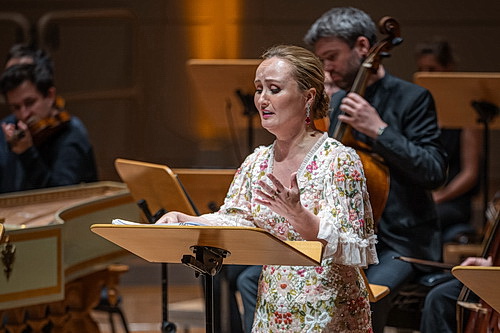 Unter Leitung der Violinistin und Dirigentin Martyna Pastuszka bestätigt {oh!} Orkiestra seinen Ruf, ein führendes auf historische Aufführungspraxis spezialisiertes Ensemble über die Grenzen Polens hinaus zu sein. Die Musiker als Tutti-Formation sowie die solistisch auftretenden Könner an Naturhörnern, Oboe und Flöte verstehen es blendend, die vielfältigen Farben der Partitur zum Blühen und Strahlen zu bringen. Pastuszka legt es körpersprachlich mit ruckartigen Dauerbewegungen unter Einschluss der Solo-Violine, die sie durchgängig spielt, massiv darauf an, das Orchester zu heftigen Affekten anzutreiben.