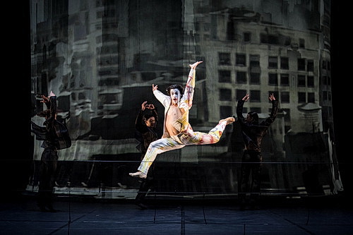 Zu erleben ist ein Abend mit zwei der musikalisch stärksten Ballettstücke des 20. Jahrhunderts und zwei zugleich überaus kreativen Auseinandersetzungen mit den großen, gleichwohl knapp und konzentriert gefassten Werken. Die Geschichte Petruschkas, der russischen Variante unserer Kasperle-Figur, verlegt Xin Peng Wang vom folkloristischen Jahrmarkt in ein amerikanisches Straßenszenario des frühen 20. Jahrhunderts, wobei er sich in Bild, Tempo und Bewegung an Vorbilder des aufkommenden Films orientiert. Beschleunigungen im Kintopp-Stil und mechanische Abläufe erinnern an Charlie Chaplins Modern Times, und die Titelfigur präsentiert sich nicht als melancholische Puppe vom russischen Jahrmarkt, sondern ist Edward Todds hintergründigem Anti-Comic-Helden Joker nachgebildet. Der buhlt natürlich nicht mit einem bösen „Mohren“ um die Gunst der „Ballerina“, sondern mit einem mafiösen „Chef“. Mit dem Ergebnis, dass er von einer Gang des Bosses unter dem Schutz eines korrupten Cops zusammengeschlagen wird und nur noch auf Rache sinnt. Damit entzieht Xin Peng Wang dem Stück eine dicke Dosis an märchenhafter Unverbindlichkeit, mildert aber auch die Empathie, die das Schicksal der an sich liebenswerten Puppe auslösen sollte. Gleichwohl entsteht aufgrund der cineastischen Einfärbung eine spannende Gratwanderung zwischen Realität und Fantasie. Vorzüglich getanzt von Javier Cacheiro Alemán als Petruschka, Simon Jones als elegant-kalter „Chef“, Amanda Viera als anmutiges Mädchen und Márcio Barros Mota als Polizist. Nicht zu vergessen das engagiert auftretende Ensemble und Motonori Kobayashis musikalische Unterstützung mit den Dortmunder Philharmonikern.