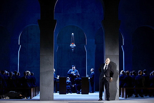 Liebe kennt bekanntlich keine Grenzen, keine Religion, keine gesellschaftlichen Hierarchien. So war es auch im Spanien des zwölften Jahrhunderts, als Rahel, eine junge, hübsche junge Frau, Tochter eines einflussreichen Bankers, mit ihrer Schwester über die Mauer in den royalen Garten eindringt. Dort trifft sie einen Mann, der sich gleich in ihre frische, freche Art verliebt. Das Problem ist: Er ist der verheiratete König Alfons VIII. in einem katholischen Land, und sie ist Jüdin. Die Liebe siegt, der König vernachlässigt siebe lange Monate seine Pflichten, seine Königin hetzt den Hofrat gegen ihn auf und erzwingt letztendlich seine Unterschrift auf zwei Dokumenten – einmal das Todesurteil der jungen Frau als vermeintliche Spionin für die Mauren, und die Kriegserklärung gegen die Mauren. Dabei hat Regisseur Robert Carsen eine der stärksten Szenen – quasi ein Autodafé – als die Waffen von einem Geistlichen gesegnet werden, die Truppen losmarschieren und allesamt getötet werden, während im Hintergrund aktuelle Kriegsvideos projiziert werden. An Brisanz hat die Geschichte, die die drei großen Weltreligionen gegenüberstellt, seit dem zwölften Jahrhundert überhaupt nichts verloren.