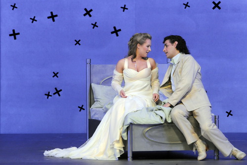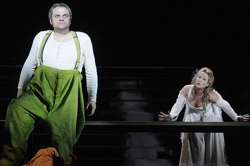 Die Inszenierung wird aber erst durch die großartige stimmliche und darstellerische Präsenz des Sängerensembles zu einem Großereignis. Der Bass-Bariton Zeljko Lucic spielt seinen wuchtigen Bass-Bariton in der Rolle des Rigoletto in jedem Moment aus. Sein beißender Spott gegenüber den Höflingen, seine rührende Vaterliebe, seine Verzweiflung beim Anblick seiner sterbenden Tochter, Lucic zeigt alle Facetten dieser Rolle und durchlebt sie in großer Intensität. Berührend seine Zärtlichkeit in der Stimme, wenn es um seine Tochter Gilda geht, gleichzeitig aber auch die Verachtung im Ausdruck gegenüber dem Herzog und seinen Höflingen. Die Sopranistin Diana Damrau legt die Partie der Gilda zart und im Piano liegend an, mit warmem Klang, sicherer Tessitura und begeisternden Höhen. Ihr Wandel von der eingesperrten Tochter zur jungen Frau, die sich für ihre vermeintliche Liebe opfert, gelingt ihr eindrucksvoll und mit anrührender Emotionalität. Ihre Arie Caro nome singt sie intensiv mit dramatischem Anklang und erhält dafür reichlich Szenenapplaus. Verletzlich ist ihr Spiel und berührend die Duette mit Zeljko Lucic. Juan Diego Flórez gibt den Herzog von Mantua als unwiderstehlicher Frauenverführer par excellence mit italienischem Schmelz, sicheren Höhen und starkem Ausdruck. Seine Auftrittsarie Questa o quella singt er mit schlanker Stimmführung und glanzvoller Tessitura, sein La donna è mobile erfüllt alle Erwartungen, die man an die wohl bekannteste Arie der italienischen Opernliteratur stellt. Georg Zeppenfeld überzeugt als Sparafucile mit dämonischem Bass und gelungenem Spiel.