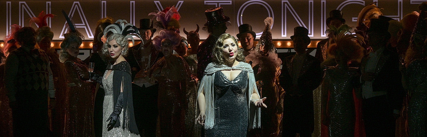 Regisseur und zugleich Ausstatter Gianluca Falaschi verlagert die 1780 spielende Handlung denn auch in eine Hollywood-reife Szenerie mit viel Glitzer, dunkelt den Raum jedoch geschickt ab, wenn persönliche Konflikte angesagt sind. Die Personenführung wirkt freilich nicht ausgereift. Während die Chorszenen revue-artig agil ausgeführt werden, verlässt sich der Regisseur bei der Personenführung zu stark auf die Ausstrahlung der Solisten. Daran mangelt es dem vorzüglichen Ensemble zwar nicht. Aber wer nicht gerade singt, steht oder sitzt mehr oder weniger teilnahmslos herum. Selbst in der Schlussszene sieht Maurizio dem Todeskampf seiner Geliebten unbewegt aus der Distanz zu.