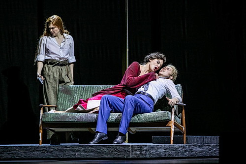 Auf eine Besetzung Ruggieros mit einem Countertenor oder ‑sopran hat man verzichtet und die Rolle der Mezzosopranistin Maria Kataeva anvertraut. Angesichts der weiblichen Übermacht geht der Besetzung dadurch ein markanter klanglicher Kontrast verloren, was aber nichts an der adäquaten Leistung der Sängerin ändert. Mit dem rundum hohen vokalen Niveau der Produktion unterstreicht die Rheinoper ihre vorbildliche Ensemblepflege, auch wenn kurzfristig Shira Patchornik von der Wiesbadener Oper für ihre erkrankte Kollegin einspringen muss. Sie übernimmt die kokette Partie Morganas, der Schwester Alcinas, mit beeindruckender Souveränität. Singende Männer haben in dieser Produktion nicht allzu viel zu sagen. Gleichwohl runden Andrés Sulbarán als Oronte und Benjamin Pop als Melisso die Gesamtleistung nahtlos ab. Und ein Sonderlob verdient Maria Carla Pino Cury, wie Sulbarán noch Mitglied des Opernstudios, für ihre perfekte Darstellung des Knaben Oberto.