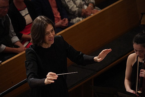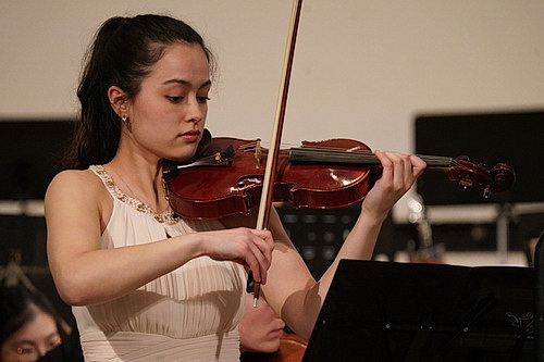 Denn ein Jahr später entstand das Concerto del Sapone, wie Barber sein Konzert für Violine und Orchester opus 14 später scherzhaft nannte, entstand es doch als Auftragsarbeit des Seifenfabrikanten Samuel Fels. Hatte es der Geiger Iso Briselli, für den es geschrieben worden war, im Finale für unspielbar erklärt, wurde es zu einem der am meisten gespielten Violinkonzerte in Nordamerika. Das Uni-Orchester hat als Solistin eine Kommilitonin einladen können. Elena Klaas hat bereits als Jungstudentin an der Robert-Schumann-Hochschule Geige studiert und ihre Ausbildung fortgesetzt, bis sie 2020 ihr Medizinstudium aufnahm. Nach dem Seifenkonzert fragt man sich allerdings, ob sie den richtigen Weg einschlägt oder der Musikwelt hier nicht eine hervorragende Violinistin verlorengeht. Das Orchester unterstützt sie fabelhaft, und so gelingt eine eindrucksvolle Darbietung. Für den Jubel im Auditorium bedankt Klaas sich mit der Sarabande aus der Zweiten Partita von Johann Sebastian Bach.