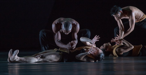 Von einer ungewohnt dunklen und fast urtümlich archaischen Seite zeigt sich Martin Schläpfer in seiner neuen Choreografie Roses of Shadow, die er jetzt mit seinem Ballett am Rhein im Düsseldorfer Opernhaus zur Uraufführung brachte. Eine Arbeit, die etliche Zuschauer sichtlich verstörte, zumal sie mit ihrem kantigen, schroffen Profil einen scharfen Kontrast zu zwei geradezu lieblich anmutenden, teilweise verspielten Choreografien von George Balanchine und Hans van Manen bildet, mit denen Schläpfer sein dreiteiliges Ballett-Programm b.33 bestückt.