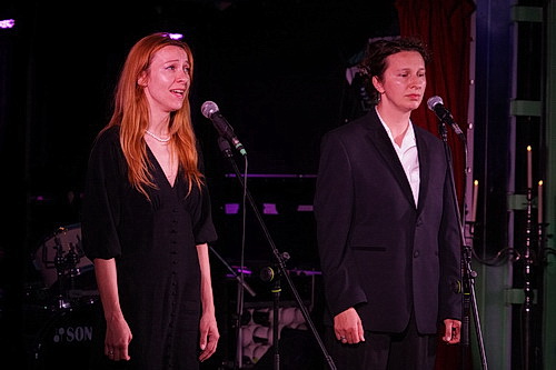Ende Juni dieses Jahres fand im Freibad, der neuen Spielstätte am Worringer Platz, das Musiktheater Blatt im Wind von Alexander Manotskov in der Regie von Emiliia Kivelevich statt. Nun tragen die Sängerinnen Kyralina Mishchenko und Marfa Umanski in Begleitung des Komponisten am Cello Ausschnitte daraus vor. Gedichte und Texte von Mascha Kaléko werden dabei mit dem Stück Furcht und Elend des Dritten Reiches von Bertolt Brecht verknüpft. Da wird es zu der wunderbar melodienreichen Musik von Manotskov plötzlich höchst poetisch, leise, nachdenklich und die Stimmen der Sängerinnen dringen tief in die Seelen ihrer Hörer vor. Kivelevich hat es sich nicht nehmen lassen, den Auftritt zu gestalten und erreicht mit kleinen Gesten und Aufteilung der Räume noch eine deutliche Steigerung der Wirkung. Da verstummen auch die letzten Gespräche im Publikum, das mit seiner Begeisterung nicht hinter dem Berg hält.
