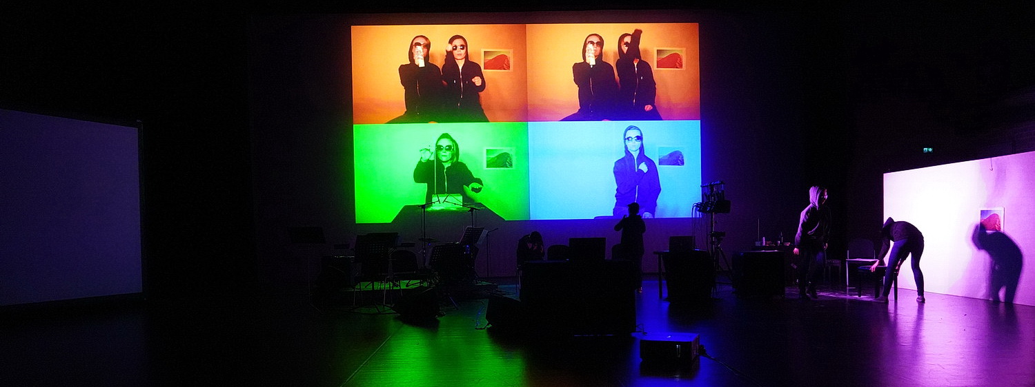 Rebekka Salomea Ziegler, eigentlich eher im Jazz unterwegs, eröffnet den Abend, der sich großartig zwischen Live-Musik, Video, Live-Video-Aufnahmen und Ton-Einspielungen bewegen wird. Sie zitiert in Public Privacy #6 – voice: bright no more die Luft-Schreibmaschine von Leroy Anderson aus dem Jahr 1950, die Jerry Lewis so herrlich 1973 im deutschen Fernsehen präsentiert. In der künstlerischen Umsetzung Muntendorfs gerät die Komik unterschwelliger und wird durch die stimmlich fantastische Darbietung von Ziegler ergänzt.