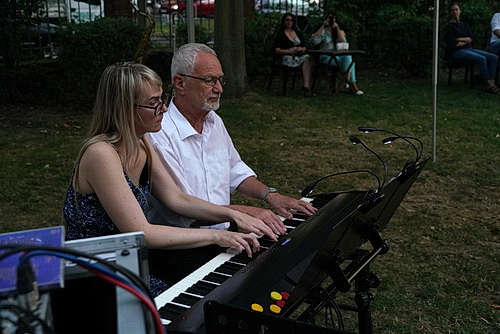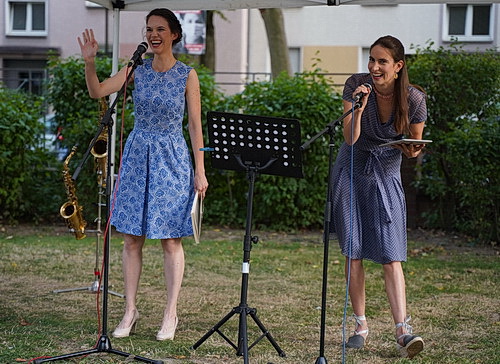 In Ermangelung ihres Ehemannes, mit dem Thomas das Duett sonst singt, springt Huy ein, um die Lippen schweigen zu lassen. Sehr zur Freude der Zuhörer, die in Operettenseligkeit schwelgen dürfen. Ganz besonderes Engagement zeigt Frank Schnitzler. Der Tenor schwingt sich nach seiner Probe in der Deutschen Oper am Rhein auf sein Fahrrad und versucht, einen neuen Rekord auf dem Weg von der Innenstadt zur Himmelgeisterstraße aufzustellen, um hier noch auftreten zu können. Befreit singt er den neapolitanischen Gassenhauer Core ‘ngrato aus dem Jahr 1911, vielen besser bekannt als Catarì, Catarì. Und mit seinem You’ll never walk alone endet dann nach rund zwei Stunden endgültig der sängerische Teil dieses wunderbaren Spätsommertages. Daran können auch die vielen Zugabe-Rufe nichts mehr ändern. Die vielfache Nachfrage des enthusiasmierten Publikums nach einem weiteren Termin muss an diesem Abend noch offenbleiben. Es könnte aber sein, dass im Oktober ein drittes Konzert am Café Mautz folgt. Zu wünschen wäre es allemal.