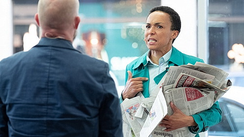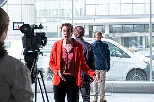 Die Rollen sind scharf gezeichnet. Die Darsteller haben sie inzwi­schen verin­ner­licht, so dass der Vortrag überzeugend und ohne Ausfälle ist. Julia Dillmann spielt Kati Baumann, eine Journa­listin, die vermutlich bei einer Tages­zeitung arbeitet. Daniel Fries als Mitglied der Antifa und Journalist „der linken Szene“, außerdem Augen­zeuge der Gescheh­nisse nach dem Anschlag, hat das Wissen gepachtet. Azizé Flittner gibt eine jüdische Sozial­ar­bei­terin mit einem mehr als bedenk­lichen Schluss­mo­nolog. Alexander Steindorf bekommt als Leitender Ermittler eine Traum­rolle, darf er doch derjenige sein, der die Gescheh­nisse relati­viert, wie gleich zu sehen sein wird. Und als „Vertei­diger“ von Ralf S. darf Jonathan Schimmer einen Monolog halten, der zwar scheinbar aus der politisch falschen Ecke kommt, aber im Grunde das unter­streicht, an was es dem Stück mangelt.