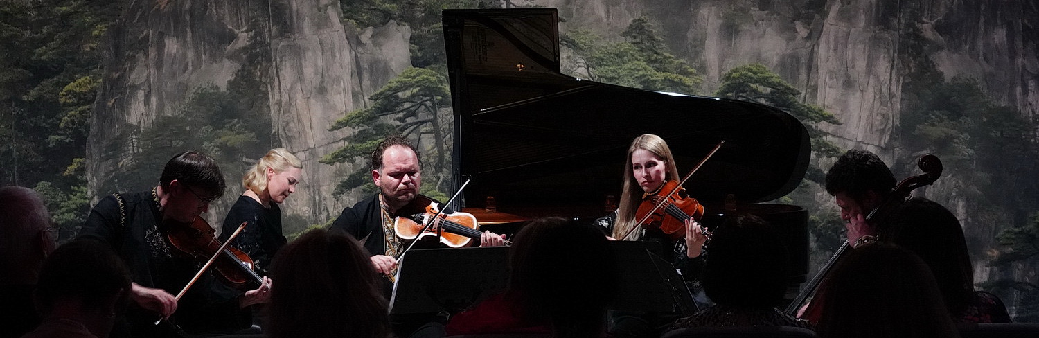 Im letzten Teil des Abends stellen die fünf Musiker das Ukrainische Klavierquintett c‑Moll von Borys Liatoshynsky vor, das 1942 entstand. In vier Sätzen dürfen sich die ohnehin hochenergetisch aufspielenden Musiker noch einmal richtig austoben. So wunderbar das Ensemble spielt, zeigt es mit seiner Lautstärke die Grenzen des Saals auf. Nach zwei Stunden kommen die fünf mit der beschwingten Zugabe Im Volkston von Myroslav Skoryk zum glücklichen Ende. Ein großartiger Abend, der auch vom Publikum gefeiert wird.