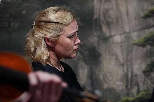 Das Programm, das die Musiker im Gepäck haben, weicht stark von dem ab, was man üblicherweise in Deutschland im Konzertsaal zu hören bekommt, denn Pianistin Petrychenko hat es sich zur Aufgabe gemacht, die ukrainische Musik auch jenseits der eigenen Landesgrenzen bekannter zu machen. Leicht wird es ihr nicht gemacht dabei. Denn weder bekommt sie Unterstützung seitens der ukrainischen Landesvertretungen in Deutschland noch zeigen sich die Deutschen, zumindest an diesem Donnerstag, besonders neugierig. Gerade mal etwas mehr als die Hälfte der Plätze sind besetzt. Aber davon lässt die Pianistin sich nicht entmutigen. Wie gewohnt, moderiert sie ihre Konzerte selbst, so dass das Publikum auch von den Lebensläufen der Komponisten und ihrer Bedeutung in der Heimat erfährt.