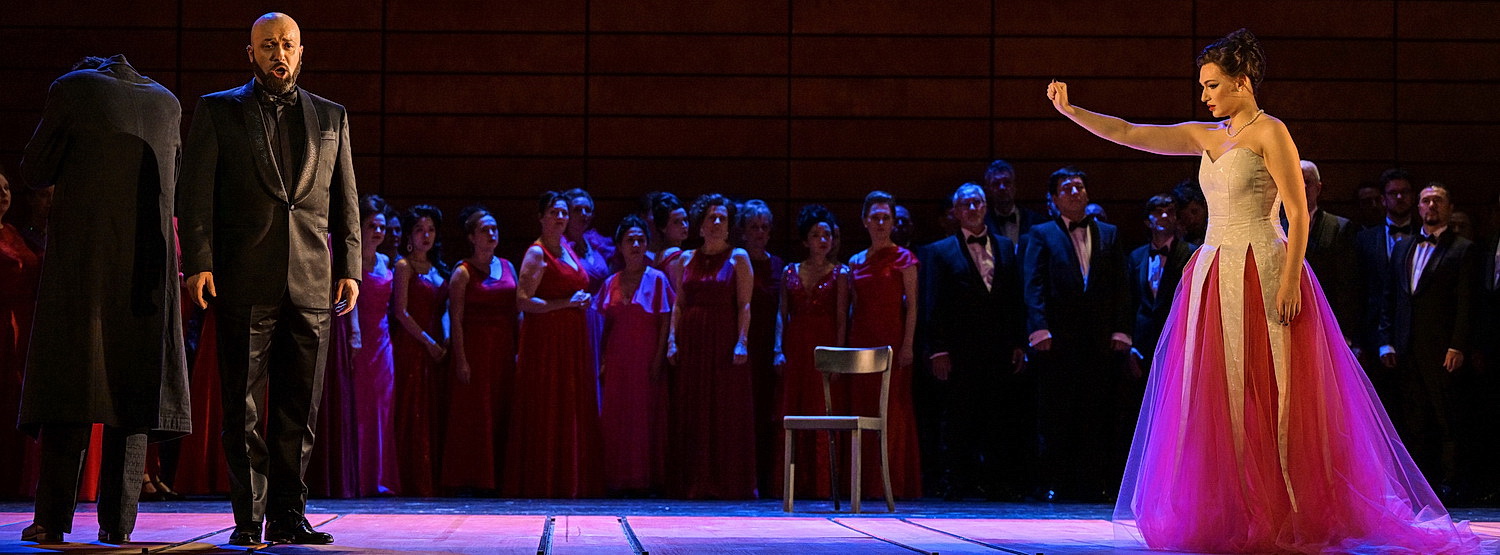 In einer Inszenierung, die sich nicht gerade als Partner der Sängerbesetzung versteht und sie in einzelnen Szenen im Bemühen, packende Emotionalität zu entfachen, im Stich lässt, tritt der Stellenwert der romantisch-melodisch grundierten Onegin-Partitur wie eine tragende Architektur hervor. Besticht sie durch ihre große Bandbreite von der kammermusikalischen Intimität bis zur Tutti-Opulenz. Warum die Düsseldorfer Symphoniker unter Leitung ihres designierten Generalmusikdirektors Vitali Alekseenok aber durchgängig mit überzogener Lautstärke agieren müssen, ist nicht zu verstehen.