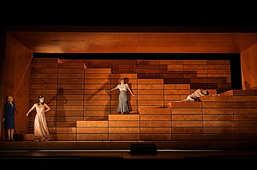 Anfänglich erscheint es plausibel zu sehen, wie die ungestüme Olga und die von Liebe entflammte Tatjana gegen die Wand anrennen. Nach einer halben Stunde hat sich der Effekt aber schon totgelaufen. Auch szenisch bietet Thalheimer wenig. Zu Beginn ist das Duett von Tatjana und Olga, das sich zum Quartett der Frauenstimmen mit Larina und der Amme Filipjewna weitet, noch einigermaßen lebendiges Theater. Bald darauf entlarvt die textlich und musikalisch ausgreifende Briefszene der Tatjana die Enge des Konzepts augenscheinlich. Existent sind weder ein Federkiel noch ein Tintenfass oder ein Stück Papier, um wenigstens den ersten Entwurf spektakulär zerreißen zu können.