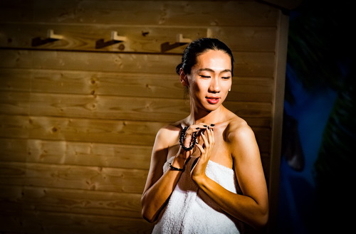 Christof Seeger-Zurmühlen schafft als Regisseur daraus ein dialoglastiges Stück, das unter seiner Personenführung ausreichend optische Vielfalt bietet, die es zum Vergnügen werden lässt. Insbesondere die „Besetzungscouch“ hat hervorragend funktioniert. Wunderbar, wie viel einzigartige Menschen es in der rheinischen Landeshauptstadt gibt. Und Glückwunsche an Seeger-Zurmühlen, dass er sie wie Perlen aus dem Flussgrund, nein, aus den verschiedenen Stadtteilen ausgräbt und sie auch so präsentiert. Kirsten Dephoff hat ihm dafür das Panorama zur Verfügung gestellt. Eine bunte Bühne, in deren Mittelpunkt eine Sauna steht, die immer wieder durch den Raum verschoben wird. Zahlreiche Requisiten wie übergroße Blütenstängel, Birkenreiser, Bäume, Palmen, Handtücher oder ein Eiszuber bereichern das farbenfrohe Treiben, in dem sich die Darsteller in stimmigen Kostümen bewegen. Ein gewickeltes Handtuch ist das Hauptmotiv, das sich durch die Aufführung zieht. Dazu Flipflops und Bademäntel. Parallel zu den „Saunagästen“ gibt es ein stummes Paar, das mit kampfsportlichen Einlagen so etwas wie das fitnessorientierte Idealpaar heutiger Tage verkörpert. Konstantin Sonneson taucht das Ganze in ausreichendes Licht, schafft die Wechsel mitunter etwas abrupt, aber damit kann man leben.