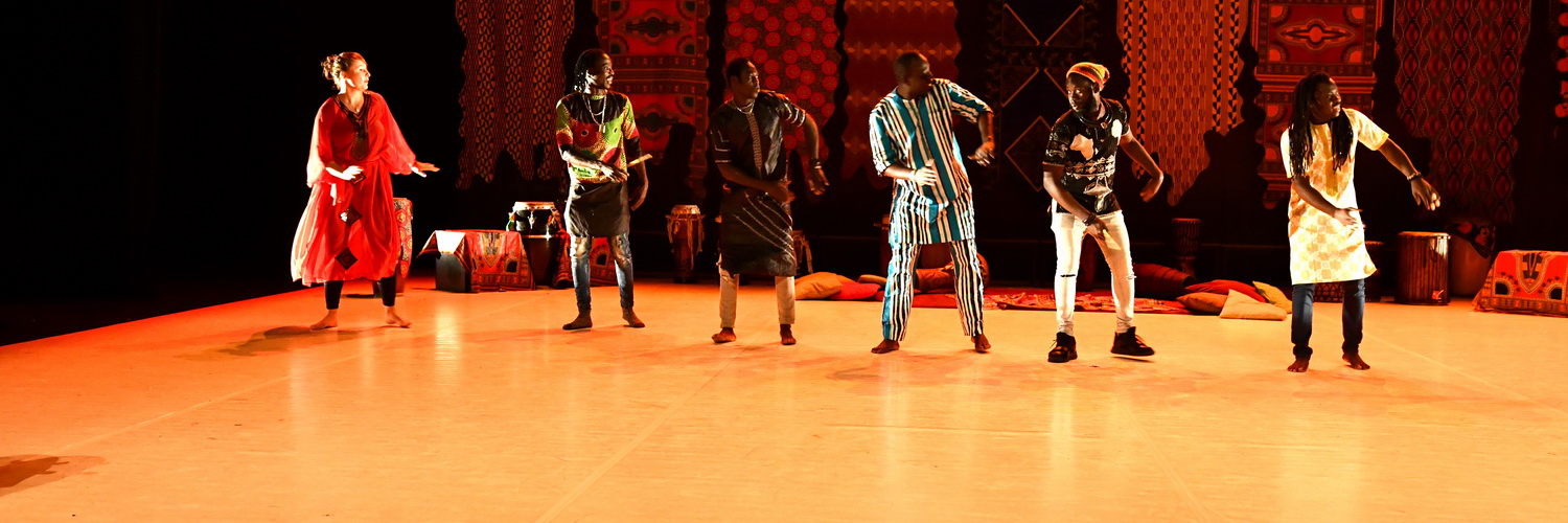Im ersten Teil kommen alle Betei­ligten auf der Bühne zusammen, um sich anschließend mit kurzen Einlagen vorzu­stellen und abzugehen. Schon hier wird deutlich, dass die unter­schied­lichsten Tanzstile doch Gemein­sam­keiten haben. Sie sind untrennbar mit Gesang und Rhyth­mus­in­stru­menten verbunden. Was eigentlich als Nummern-Revue daher­kommt, wird von Batá und Kollegen durch fließende Übergänge und ein fröhliches Mitein­ander immer wieder aufge­brochen, so dass die einzelnen Stile und Solisten zwar erkennbar sind, strenge Regeln und Lange­weile aber außen vorbleiben. So entsteht ein melting pot, ein Schmelz­tiegel, der vermutlich genau das wider­spiegelt, was während der Dance Days tagsüber im Tanzhaus vor sich geht. Es lohnt kaum, sich in dieser Moment­auf­nahme mit den Feinheiten von Fusion, Cuban oder Vibes – vor alles lässt sich trefflich ein „Afro“ setzen – HipHop, Samba oder Sabar ausein­an­der­zu­setzen. Hier heißt es schlicht, sich auf Rhythmus und Lebens­freude einzulassen.