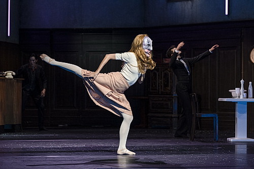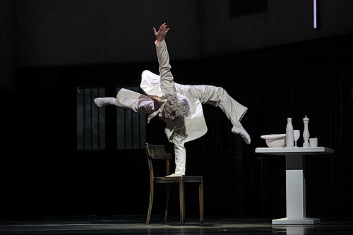 Volpi hat für sein neuestes Werk Geschlossene Spiele das Schauspiel Nada a Pehuajó von Cortázar als Grundlage gewählt. Übersetzt heißt der Titel „Nichts mehr nach Pehuajó“, wobei Pehuajó eine Kleinstadt in der Provinzregion Buenos Aires ist. Mit dieser Bekanntgabe begibt sich das Publikum, von dem seit der Uraufführung nicht mehr viel geblieben ist, direkt in das wunderbare Bühnenbild von Heike Scheele. Hier fehlt nur noch der Bandoneon-Spieler, um die Atmosphäre eines Restaurants in Buenos Aires in den 1960-er Jahren perfekt zu machen. Ein wenig heruntergekommen wirkt das Ganze. Links steht ein Klavier, weiter nach hinten ist die Rezeption mit der Postannahme angeordnet. Im Hintergrund der Eingang, auf der linken Seite oben die Luke eines Speisenaufzugs, davor der Ausgang zur Küche. In der Mitte sind Stühle und Tische in mildem Durcheinander angeordnet. Das Bühnenbild ist grandios. Bonnie Beecher vermag es mit ihrem Licht noch einmal ordentlich zu unterstreichen. Offensiv setzt sie neben einer ordentlichen Grundhelligkeit Spots, die die originellen Einfälle Volpis in den Fokus rücken. Einmal mehr tritt sie damit den Beweis an, dass Choreografen ihre Tänzer nicht im Halbdunkel absaufen lassen müssen, um Wirkung zu erzielen. Katharina Schlipf hat stark typisierende Kostüme mit Witz und Fantasie ausgewählt.