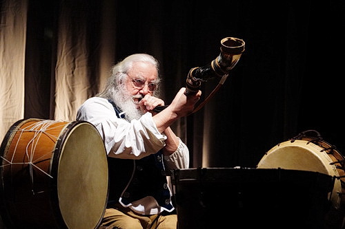 Jean-Jacques Lemètre, 40 Jahre lang für die musika­li­schen Geschicke im Pariser Théâtre du Soleil verant­wortlich, hat gemeinsam mit Lensing die Musik gestaltet. Und sich selbst dabei die eine oder andere Hürde auferlegt, wenn er auf Gesten genau – obwohl vom erhöhten Stand­punkt aus kaum erkennbar – die Einsätze von Laute, Flöten, Streich­in­stru­menten, Klari­nette und vor allem einer Vielzahl von Trommeln punkt­genau treffen muss. Lensing unter­stützt tatkräftig von der Seite mit Trommeln und Schellenbaum.