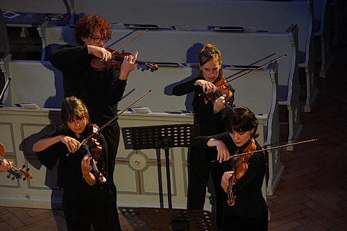 Wir zeigen denen jetzt mal, was Rock’n’Roll in der klassi­schen Musik heißt. Man kann sich leicht vorstellen, dass Ellée genau eine solche Losung an seine Kollegen ausge­geben hat, bevor sie gutge­launt die Treppen von der Empore herun­ter­steigen, um den wenigen Besuchern ein quirliges Programm zu präsen­tieren. Von C.P.E. Bach gibt es einen Querschnitt durch seine Hamburger Sinfonien, und wer danach als musika­li­scher Laie nicht zumindest eine Ahnung davon hat, was Kontra­punkt meint, muss Ohren­stöpsel tragen. Zwischen die einzelnen Sätze sind Werke von Price gemischt. Aus den Five Folksongs In Counter­point erklingen Drink To Me Only With Thine Eyes, Go Down Moses, Calvary, Swing Low Sweet Chariot und Shortnin’ Bread, aus den Negro Folksongs In Counter­point For String Quartet gibt es zudem Somebody’s Knockin’ At Yo Do. Zwei der Folksongs dürften auch Deutsche kennen, zu erkennen ist nur eine Passage für den musika­li­schen Laien. Ein zusätz­liches Qualitätsmerkmal.