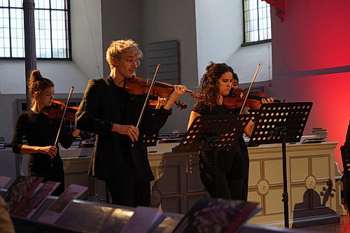 2015 in Hamburg gegründet, hat das Ensemble Reflektor heute seinen Sitz in Lüneburg und dort 2019 auch das Festival ultraBach ins Leben gerufen. Wie jedes Orchester muss es sein Allein­stel­lungs­merkmal bestimmen, um sich am Markt behaupten zu können. Sehr originell hat es dabei die Kompo­nis­tinnen der Vergan­genheit für sich entdeckt. Wäre die Angele­genheit nicht so moralin­sauer, könnte es ja sogar Spaß machen, die alte Musik auch als Hörer für sich zu entdecken. Also hat das Düsseldorf-Festival das Ensemble einge­laden, in der Neander­kirche in der Düssel­dorfer Altstadt aufzu­treten, einer der beliebten und tradi­tio­nellen Spiel­stätten des Festivals.