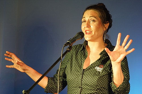 Aber was soll alles Klagen? Das Jump Blues Trio verbreitet gute Laune. Ursprünglich als Quintett mit Bassist und Blues-Mundharmonika gegründet, hat es sich in Krisenzeiten verkleinert. Raphael Landauer am Schlagzeug, Georg Mahr am Piano sowie die Sängerin Agnezz, mit bürgerlichem Namen Agnes Zarzeczny, sind geblieben, um der Krise zu trotzen. Seit knapp zwei Jahren arbeiten die drei in dieser Konstellation zusammen. Während Landauer und Mahr Jazz- und Blues-Urgesteine sind, kommt Agnezz ursprünglich aus dem klassischen Bereich. Sie hat ihre Studien in Düsseldorf und Krakau mit Diplomen als Gesangs- und Klavierpädagogin sowie als Pianistin abgeschlossen. Und inzwischen auch die Fragen nach der unsinnigen Trennung zwischen E- und U‑Musik, die im Studium immer drängender wurden, für sich gelöst. Tagsüber kümmert sie sich um junge Leute, die das Klavierspiel oder klassischen Gesang erlernen wollen, abends lässt sie sich auf so viele Musikrichtungen wie möglich ein. Wer jetzt an eine Cover-Band denkt, wird schnell enttäuscht. Zwar sind da Titel wie The Wanderer, Flip Flop, One Scotch, Tainted Love oder auch mal ein Mambo erkennbar, aber die Musiker sind souverän genug, eigene Arrangements zu spielen und Agnezz findet ihre ganz individuelle Interpretation der Texte. Das klingt grandios, enorm unterhaltsam und macht gute Laune. Moderationen erübrigen sich da. Allenfalls kurze Rücksprachen zwischen den dreien, was man als nächstes wohl spielen könnte, spiegeln Spontaneität vor. Wie es sich gehört, herrscht eine entspannte Atmosphäre.