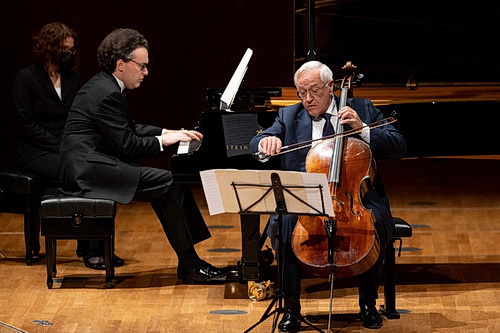 Im zweiten Teil des Abends bringen Kissin und Geringas eine Sonate für Violoncello und Klavier zu Gehör, die Kissin 2016 selbst komponierte und die von Gautier Capuçon und Yuja Wang beim Verbier-Festival uraufgeführt wurde. Nach dem anspruchsvollen Stück führt Geringas John Corigliano mit seinem Fancy on a Bach Air und das Prélude aus der Suite Nr. 1 von Johann Sebastian Bach zusammen. Ein Höhepunkt dieses Abends, wenn nicht sogar der Höhepunkt ist, wenn Geringas selbst die Stimme erhebt, um sie mit seinem Cello klingen zu lassen. Da hält die Hörer nichts mehr auf ihren Sitzen. Mit Bravo-Rufen feiern sie die überwältigende Interpretation. Das Ende des Abends gehört Kissin, der mit dem zweiten Satz Pianissimo (Klage) aus dem Buch für Cello von Peteris Vasks, dem Scherzo Nr. 2 b‑moll, opus 31, und der Polonaise As-Dur, opus 53, von Frédéric Chopin zeigt, welche Kunst ihm Weltruhm einbrachte.