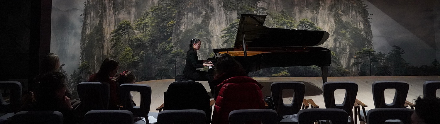 Mit halb sieben an einem Freitag­abend ist der Zeitpunkt vielleicht nicht ganz so glücklich gewählt. Zumindest scheinen Schüler und Kollegen der Künst­lerin ebenso verhindert zu sein wie das Stamm­pu­blikum des Centrums. Das ist in hohem Maße bedau­erlich, weil Dongni Cui ein ausge­sprochen inter­es­santes Programm zusam­men­ge­stellt hat. Der Anspruch ist hoch. Sie hat sich zum Ziel gesetzt, verschiedene Aspekte der Virtuo­sität aufzu­zeigen. Mit der Klavier­sonate h‑Moll von Domenico Scarlatti legt sie den Start­punkt ihrer kleinen Reise durch die Epochen in das 18. Jahrhundert. Man muss das zarte Spiel mögen, das ihr so meisterhaft gelingt. Aus dem gleichen Zeitraum stammt die Suite en la: Gavotte et six doubles von Jean-Philippe Rameau, die schon etwas gehalt­voller daher­kommt. Für Dongni Cui versteht es sich von selbst, dass der D‑Flügel nicht mit Papier zugedeckt wird. Sie hat die Noten zuhause gelassen. Da staunt schon mancher, wenn es rund hundert Jahre später an die dreisätzige Klavier­sonate As-Dur von Joseph Haydn geht. Spätestens im Presto wird deutlich, dass Virtuo­sität sich auch im Tempo zeigt. Und die Pianistin lässt sich auch nicht aus der Ruhe bringt, als das Publikum zwischen den Sätzen klatscht.