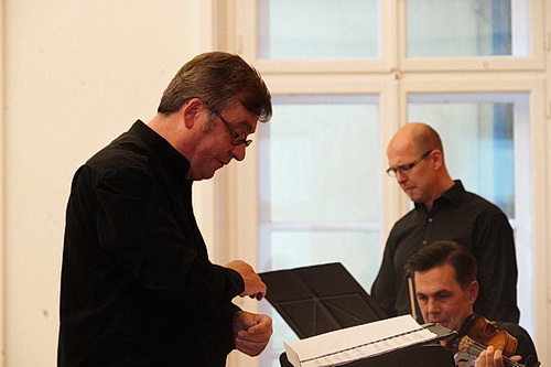 Für Miro Dobro­wolny ein unhalt­barer Zustand, gegen den man sich künst­le­risch zur Wehr setzen muss. Dobro­wolny ist in Zagreb geboren, wuchs seit 1966 im Rheinland, Ruhrgebiet und im Bergi­schen Land auf. Er studierte Violine, Kompo­sition, Dirigieren, Kammer­musik und Musik­wis­sen­schaft in Essen, Köln und Düsseldorf. Die Veran­staltung von Festivals und Konzert­reihen scheint zu seinen Lieblings­be­schäf­ti­gungen zu gehören. Und so gründete er neben vielen anderen Veran­stal­tungen 2014 die Klang­räume Düsseldorf, die in diesem Jahr in ihrer zwölften Ausgabe statt­finden. In tempore belli, in Zeiten des Krieges, lautet das Motto von fünf Konzerten, die Dobro­wolny mit seinem Art Ensemble NRW organi­siert hat. Das letzte findet an einem Samstag­abend im Palais Wittgen­stein, einem der Kammer­mu­siksäle Düssel­dorfs, statt.