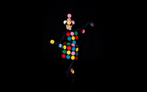 Diesen Anspruch erheben Lensing und sein Team auch nicht, sondern ihnen geht es um eine eigen­ständige kreative Einbettung der von Christian Forsen nachge­schnei­derten Figurinen in ein 65-minütiges Ballett­spek­takel, in dem neben dem Tanz auch Wort, Licht und Musik eine wichtige Rolle spielen. Ohne die Leistungen aller Betei­ligten abwerten zu wollen, geht von den bizarren Formen der Figurinen der spekta­ku­lärste Reiz aus. Gespielt wird dabei mit den geome­tri­schen Grund­formen und prallen Farben, die wir bereits aus den Kostümen zum Triadi­schen Ballett kennen. Zu sehen sind diesmal eine Segel­fi­gurine, eine Fächer­fi­gurine, eine Schei­ben­fi­gurine, eine Blüten­fi­gurine, eine Kugel­fi­gurine und eine Draht-Licht­fi­gurine. Kostüme, die in ihrer skurrilen Optik die Bewegungs­freiheit bisweilen einschränken, die in Verbindung mit inter­ak­tiven Video-Trans­for­ma­tionen jedoch ein schil­lerndes Farbenmeer garantieren.