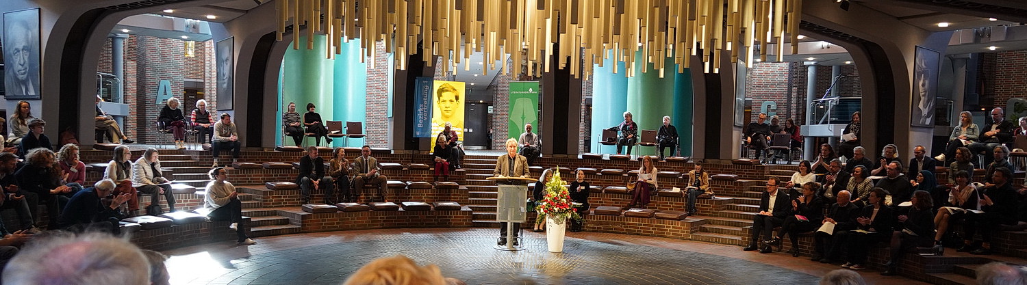 Und dazu hat man einiges unternommen. Denn nicht nur Vorleser der Regierungsinstitutionen Stadt und Land sind gekommen. Stattdessen haben die Veranstalter sich um Proporz bemüht. Nicht der Erste Bürger, wie ihn Michael Serrer, Leiter des Literaturbüros NRW begrüßt, sondern der Oberbürgermeister Stefan Keller ist gekommen, um den Augenzeugenbericht von Kästner vorzutragen. Katharina Schunck, Bildungsreferentin beim Jugendring Düsseldorf, liest aus Im Westen nichts Neues und bildet damit offenbar die Jugend ab, die hier nicht vertreten ist. Als jüdischer Vertreter ist Herbert Rubinstein eingeladen, der einen eher befremdlichen Ausschnitt aus Jakob Wassermanns Mein Weg als Deutscher und Jude vorliest. An den Roman Das kunstseidene Mädchen von Irmgard Keun braucht wirklich niemand zu erinnern. Aber der Vortrag von Mona Neubaur, Stellvertretende Ministerpräsidentin des Landes Nordrhein-Westfalen, ist sehr gelungen. Es ist müßig, hier nun alle Vorleser zu nennen – den Schwulen, die Muslima, den SPD-Abgeordneten oder eine weitere Vertreterin der Grünen – die allesamt aus bekannten Werken noch bekannterer Autoren vortragen. Allenfalls Pater Christoph Bergmann sorgt mit seiner Wahl Die Sünder der Hölle aus der Hauspostille Bertolt Brechts für Erheiterung. Dass es auch diesmal mit dem Proporz nicht klappt, ist selbstverständlich. Der Bäcker, die Putzfrau und der Fabrikarbeiter haben hier augenscheinlich nichts verloren.