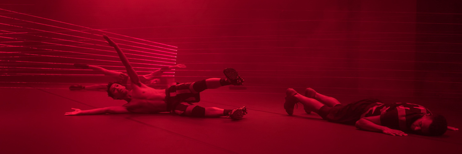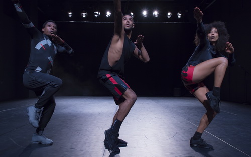 Bewusst nutzt die Choreografin die black box der Studiobühne als begrenzten, ja, eingeengten Spielraum, den Schwarze aus ihrer Sicht zur Verfügung haben. Und das über den Lauf der Jahrhunderte. So beginnt das Werk nach gesprochener Einleitung mit höfischen Posen zu barocker Musik. Dass Alona Rodeh dazu nicht mehr eingefallen ist als legere Sportbekleidung – geschenkt. Immerhin kommt so viel Haut zum Vorschein. Eine stilisierte Wrestling-Einlage führt zum Höhepunkt der Choreografie. Auf der Grundlage von Maurice Béjarts Bolero-Ballett – Jassem Hindi hat die Musik modernisiert und an das eigene Klangbild angepasst – lösen Jonathan Gonzales, Tiran Willemse und Lewis das Solo im Gruppentanz auf. Bei der Lichtführung, deren hohe Präzision für Béjarts Choreografie absolut notwendig ist, scheint Andreas Harder etwas mit der Technik zu hadern und so können die Schattenhände nicht ganz die explosive Ausdruckskraft des Originals erreichen. Respektlos gleitet der Bolero in moderne Club-Musik ab, die die Körperlichkeit wieder mehr in den Mittelpunkt rückt. Dabei fällt vor allem die räumliche Aufteilung auf, wenn Lewis die Mitte des Raumes fast zu scheuen scheint. Immer wieder rücken die Tänzer in die Peripherie aus, drücken und drängeln sich an den Außenwänden entlang, Ausbruchsversuche an den Mauern empor inklusive. Linienbildungen, bei denen die drei Körper hintereinanderliegen, geraten ebenso scheinbar in die Raummitte wie immer neue Kumulationen, bei denen die Tänzer selbst in intime Tabuzonen einbrechen. Viele der Schichten dieser Choreografie zeigen deutliche Bilder, ohne die künstlerische Abstraktion endgültig zu verlassen. Eingebettet in die fast vollständige körperliche Verausgabung sprechen auch die beiden Tänzer Statements, die in kaum verständlichem Englisch im Raum versickern. Einmal mehr lässt das Tanzhaus sein deutsches Publikum im Regen stehen, wenn es keine Texthilfen an die Hand gibt. Den Gesamteindruck des Abends vermag das allerdings nicht zu trüben, der insbesondere deshalb so stark ist, weil die Choreografin Tanz als gesamttheatralische Aufgabe versteht.