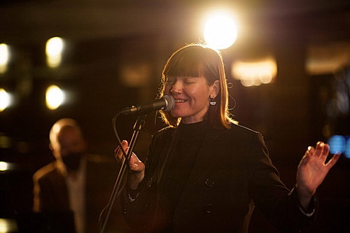 „So ein Konzert-Setting möchte ich in einem Jahr im Real Life IN DER Tonhalle mit Publikum erleben (Großschreibung im Originaltext – Anm. d. Red.)“, fordert ein anderer Zuschauer, während es Schimmer geschafft hat, dass die Menschen die Situationen schildern, in denen sie die Übertragung zuhause erleben. Da gibt es das Paar, das sich an diesem Abend schick angezogen hat und Prosecco trinkt, ebenso wie die Familie, die es sich auch kulinarisch gut gehen lässt. In der Kombination entsteht eine Atmosphäre, die den Abend zu einem Genuss werden lässt. Und dazu trägt auch das letzte Duo des Abends noch einmal ordentlich bei. Eigentlich tritt Indigo Jazz Lounge als vierköpfige Band auf. Aber wenn Sängerin Anikó Kanthak dabei ist, darf es dann auch schon mal das Duo mit Sebastian Gahler sein. Ihr Auftritt offenbart dann auch noch zwei kleine Fehler der „Uraufführung“: Ein bisschen weniger Gegenlichtaufnahme oder andersrum eine ausgewogenere Beleuchtung könnte nicht schaden. Und in der Bar einen Tisch herauszunehmen, um das Duo nicht ganz so hineingepfercht ausschauen zu lassen, hätte zur Nonchalance beitragen können. Aber welchen Zuschauer interessiert das jetzt noch? Man glaubt gar nicht, wie viele Möglichkeiten des Applauses es in einem Chat gibt. Kanthak und Gahler am E‑Piano eröffnen mit White Christmas. Ja, da schmelzen nicht nur die Herzen der Jazz-Fans dahin. Free Fallin‘ ist ein Song von Jeff Lynn und Thomas Earl Petty, den auch schon Guns’n’Roses interpretiert haben.