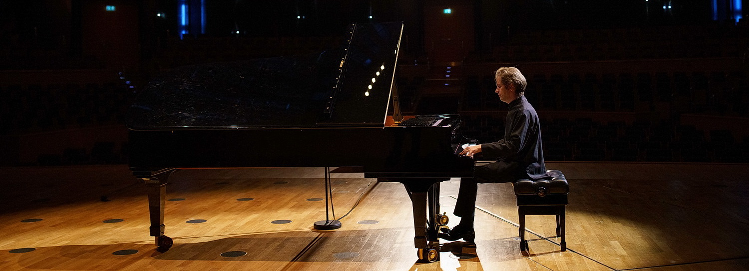 Vorerst aber führt Schimmer das Publikum in den Mendelssohn-Saal. Dort wartet ein entspannter Severin von Eckardstein am Flügel auf der großen Bühne. Was schon beim Auftritt von Amend auffiel, wird hier besonders deutlich und auch vom Publikum honoriert: Die Kameraführung wirkt auch mit vergleichsweise kleinen Mitteln außerordentlich professionell und abwechslungsreich. Da bleibt man gern vor dem Monitor sitzen. Auch wenn es bei Johannes Brahms mit dem Intermezzo in A‑Dur bisweilen etwas betulich zugeht. Bei Franz Liszts Chasse Neige, also dem Schneepflug, überschlägt sich die Begeisterung der Chat-Teilnehmer. Und auch, wenn der eine oder andere vermutlich gar nicht mitbekommt, dass von Eckardstein mit Jean Sibelius‘ En Etoi Valtaa, Loistoa – Gib mir keinen Glanz, kein Gold, keine Pracht – eines der beliebtesten finnischen Weihnachtslieder interpretiert: Dass er keine Notenblätter vor sich liegen hat, um seinen brillanten Vortrag auf die Bühne zu bringen, beeindruckt alle.