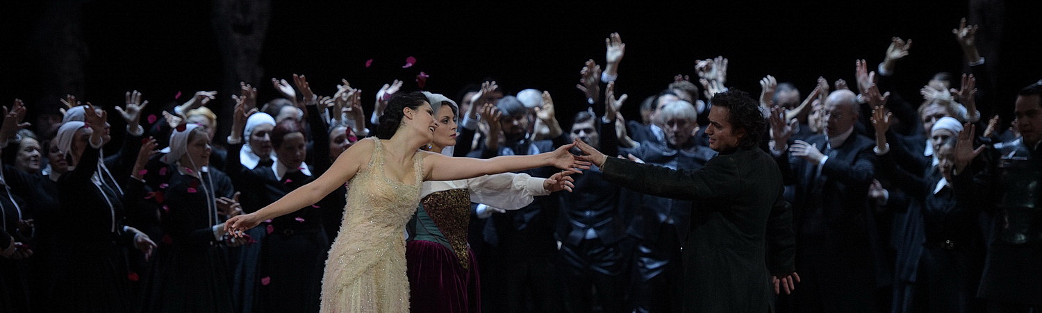 Der Name Rolando Villazóns dürfte seine Wirkung als Kassenmagnet nicht verfehlen. Auch wenn er derzeit im Düsseldorfer Opernhaus nicht als „Star-Tenor“ auf der Bühne steht, sondern als Regisseur einem der vokal anspruchsvollsten Belcanto-Klassiker mehr Leben einzuhauchen versucht als die recht wirre Handlung herzugeben scheint. Natürlich weiß Villazón, dass der Erfolg von Vincenzo Bellinis Oper I Puritani zum entscheidenden Teil von den Gesangsleistungen abhängt, und da landet die Deutsche Oper am Rhein mit Adela Zaharia in der zentralen Rolle der Elvira eine geradezu sensationelle Punktlandung. Die Sopranistin, der Ende der Saison Verpflichtungen an der Bayerischen Staatsoper bevorstehen, verbreitet in Sachen Bühnenpräsenz und stimmlicher Gestaltungskraft einen Hauch von jener internationalen Weltklasse, der an der Rheinoper öfter wehen könnte. Auch wenn der Rest des Ensembles, mit Ausnahme des grandiosen Bassisten Bogdan Taloş in der kleineren Rolle des zwielichtigen Sir Giorgios, das Niveau Adela Zaharias nicht ganz erreichen kann, animiert sie ihre Kollegen zu Leistungen, die den Anforderungen der Partien weitgehend gerecht werden. Zumal mit Antonino Fogliani ein Dirigent am Pult der vorzüglichen Duisburger Philharmoniker steht, der genau weiß, wie die Uhren in Bellinis Musik ticken und sogar Rücksicht auf die Sänger erkennen lässt.