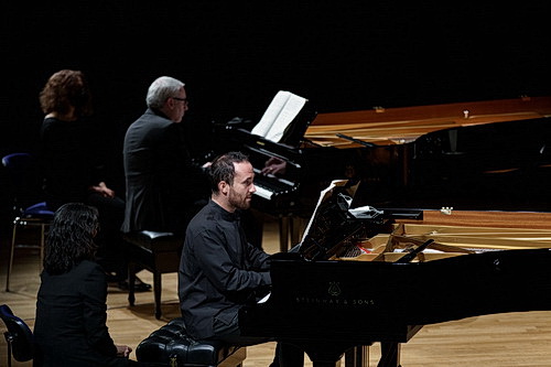 Kongenial führen Levit und Markus Becker, der einen exzel­lenten Ruf als ausge­wie­sener Reger-Spezialist hat, das rund 20-minütige Werk auf. Bereits zweimal durften sie es in den vergan­genen Jahren aufführen: im Rahmen des Klavier-Festivals Ruhr und den „Max-Reger-Tagen“ im oberpfäl­zi­schen Weiden, wo Reger seine Jugend verbrachte. Außerdem ist ihr beruf­licher Werdegang ähnlich, studierten doch beide Klavier in Hannover, wo sie heute Profes­soren an der Hochschule für Musik, Theater und Medien sind. So kommt dieses Stück wie aus einem Guss von der Bühne. Jenseits von wuchtigem Pomp oder aufge­blähten Klang­kas­kaden sind die lauten, hochvir­tuosen Stellen zwar dominant, doch stets glasklar durch­struk­tu­riert gehalten. Perlend-zart kommen wie etwa zu Beginn der Fuge die fein ziselierten Passagen im Piano daher. Haupt- und Neben­stimmen sind selbst in den komple­xesten Abschnitten deutlich durchhörbar.