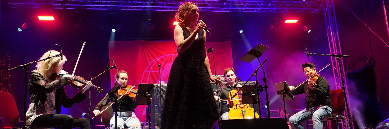 Ilse Weber muss nach dem, was man über sie liest, eine großartige Frau gewesen sein. In Ungarn als Ilse Herlinger geborene Jüdin wurde sie eine bekannte Schriftstellerin, die mit Kinderliteratur in den Vordergrund trat – und so ins Visier der Nationalsozialisten geriet. Sie heiratete Willi Weber, bekam zwei Söhne, von denen einer durch ein Kinderverschickungsprogramm überlebte. Der andere begleitete sie nach Theresienstadt und nach Auschwitz-Birkenau, wo er mit ihr ins Gas ging. Viele ihrer Texte – und Kompositionen – wurden erst posthum veröffentlicht. Den Fotografien nach zu urteilen, war Weber eine bildhübsche Frau, die sich bis zuletzt für die Kinder einsetzte, um die sie sich während der nationalsozialistischen Herrschaft kümmerte. Von ihr will Knapp drei Lieder während des Festivals vortragen, schreibt dafür sogar die Arrangements für das Converse Quartet, das Freunden des Vereins Music to Go allzu bekannt sein dürfte. Denn Laura Knapp und Maria Bovina als Geigerinnen, Maksim Korobejnikov am Cello und Elizabeth Gärtner an der Bratsche bilden auch die Besetzung für die Csárdásfürstin, mit der Music to Go aktuell tourt. Eine schöne Empfehlung, und die Veranstalter des Festivals im Düsseldorfer Volksgarten sind erst mal begeistert.