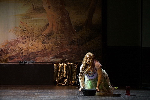 Die Vorstadtkneipe während der fünften Jahreszeit ist ebenfalls ein aufmerksam gewählter Ort für all das, was sich im Zusammenspiel menschlicher Niederungen ereignen kann. Die Polonaisen, die skurrilen Kostüme der Karnevalisten, das Gesaufe und Gegröle einer enthemmten Meute, es ist genau das, was die sehnsuchtsgetriebene Rusalka abstößt und zur Verzweiflung bringt und letztlich zerbrechen lässt. Einst aus ihrem unterkühlten und gefühlslosen Wasserreich geflohen, um die vermeintlich wärmende Liebe der Menschen zu erfahren, sieht sie sich gescheitert. Folgerichtig ist es ihr Wunsch, in die behütete Gemeinschaft des Klosters zurückkehren zu dürfen. Wie im wahren Märchen schlägt das Schicksal abermals grausam zu und der Weg zurück bleibt ihr versperrt. Sie hat die Konsequenzen zu tragen und Barkhatov lässt im dritten Akt das Leben Rusalkas noch einmal in Auszügen an ihr vorüberziehen, während sie selbst apathisch am Bühnenrand kauert. Die Rückblende beginnt mit dem kleinen Mädchen, das in den Konvent kommt, die Teenagerin, die kopfüber in das Taufbecken taucht, die junge Frau, die sich in die Hochglanzfotos der Illustrierten verguckt. Schließlich steht eine gescheiterte Rusalka einsam und verlassen auf der Bühne, der das Scheitern auf den Leib geschnitten zu sein scheint. Ist Rusalka von Beginn an ein sensibles, zartes Geschöpf, so zeigt sie sich am Ende gänzlich desillusioniert und gebrochen. Selbst die kaum mehr erwartete, bedingungslose Liebe des Prinzen hilft nicht, dem unausweichlichen Schicksal zu entrinnen. Es ist eine bewegend traurige Parabel auf ungestillte Sehnsucht nach der allesvereinenden, allesversprechenden idealisierten Liebe, die es aber weder im Märchen noch in der Realität zu geben scheint.