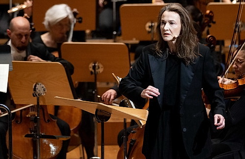 Für den Schwarzen Schnee betritt der Chor des Städtischen Musikvereins die hintere Empore. Als Sopranistin hat die Tonhalle niemand Geringeres als Marisol Montalvo, bekannte Spezialistin für zeitgenössische Musik, und als Sprecherin die Burgschauspielerin Sylvie Rohrer gewinnen können. Zusätzlich nimmt am Cimbalom, der ungarischen Ausführung des Hackbretts, Enikő Ginzery Platz. Und damit kann die durchaus als dramatisch zu bezeichnende Aufführung beginnen. Montalvo intoniert das Gedicht Le moteur blanc – Der weiße Motor – von André du Bouchet. Eher düster-melancholisch gefärbt, geben die Zeilen die Tonalität des Werkes vor. Nach einem Intermezzo des Männerchors trägt Rohrer Zeilen aus einem Vorwort Cem Özdemirs zur deutschen Ausgabe von Aslı Erdoğans Nicht einmal das Schweigen gehört uns noch vor. Erdoğan ist in Istanbul geboren. Heute lebt die Schriftstellerin, die sich unter anderem für Journalisten in Haft und die kurdische Minderheit in der Türkei einsetzt, in Deutschland. Staar hat die für die Sprecherin vorgesehenen Texte alle aus dem Buch entnommen und für die musikalische Tauglichkeit bearbeitet. Das verlangt Rohrer schon fast sängerische Fähigkeiten ab, die sie aber mühelos und eindrucksvoll bewältigt. Es sind nicht die Texte von gefangenen Journalisten, sondern das Leid derjenigen, die die Inhaftierten und Getöteten zurücklassen. Und so sind sie von Wut, Trauer und Verzweiflung geprägt.