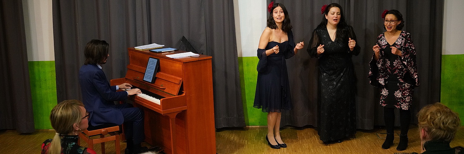 An diesem Abend bleiben viele Plätze im Salzmannbau im Düssel­dorfer Stadtteil Bilk leer, aber die „Stamm­gäste“ sind gekommen. Und so entsteht hier im Nullkom­ma­nichts eine geradezu intime Atmosphäre, in der die Düsseldorf Lyric Opera ihre Rückkehr feiert. Meghan Behiel nimmt endlich wieder am Klavier Platz, um die Sänger zu begleiten. Die „große Besetzung“ gibt es – noch – nicht, Pianist Michael Carleton und Saxofonist Luis Pallarolas bereiten sich gerade auf ein anderes Projekt vor, über das später zu reden sein wird. Aber das heutige Programm hat Behiel ohnehin locker im Griff. Locker gibt sich auch Coulmas, die das Publikum in engli­scher Sprache und glänzend gelaunt begrüßt. Es geht wieder los! Das ist die Botschaft des Abends.