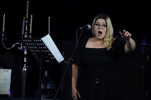 Am E‑Piano nimmt Vlad Solodovnykov Platz. Der in der Ukraine geborene Künstler arbeitet als Komponist, Sänger, Chorleiter und Kameramann. Er hat die Sängerin Olga Ali Grieshna mitgebracht, die ebenfalls in der Ukraine geboren ist, jetzt von Hamburg nach Düsseldorf gezogen ist. Solodovnykov, dem am ganzen Abend kein Lächeln gelingen will, eröffnet mit Fly von Ludovico Einaudi, begleitet dann Huy bei seinem Vortrag von Ombra mai fu, eine der berühmtesten Melodien von Georg Friedrich Händel. Eine eigene Bearbeitung präsentiert der Pianist von Alexander Skriabins Präludium für die linke Hand. Im September 1967 veröffentlichte Louis Armstrong eine Single mit dem Song What a Wonderful World von George David Weiss und Bob Thiele. Bis heute hat die Schnulze nichts von ihrer Anziehungskraft verloren, wie Huy im Folgenden beweist. In flotter Folge geht es weiter. Una mattina stammt ebenfalls von Einaudi. Bekannter noch als das Klavierstück dürfte das von Huy gesungene Caro mi ben sein, das – mit erheblichen Zweifeln – dem Komponisten Giuseppe Giordani zugeschrieben wird. Ein Liebeslied, in dem ein junger Mann seiner Traumfrau sagt, dass er sich Hals über Kopf in sie verliebt hat und sein Herz nun nur nach ihr schmachtet. Nach der Etüde Nr. 6 von Philip Glass interpretiert der Bass-Bariton Hush No More von Henry Purcell, ehe mit einer Bearbeitung für Klavier solo von Wasted Love von Solodovnykov der erste Teil des Konzerts zu Ende geht.