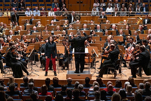 So gelingt ein ganz wunderbarer Tanz der sieben Schleier, der an Transparenz und Vitalität kaum zu übertreffen ist. Bis dahin mag man also dem zustimmen, was im Programmheft als „Editorial“ bezeichnet ist. „Wenn Oper und Symphonik Hochzeit feiern, ist dies immer ein besonderer Genuss.“ Und für instrumentale Werke trifft das bestimmt zu. Aber schon der nächste Programmpunkt straft das Editorial Lügen. Richard Strauss hat für seine Oper Salome, aus der ja auch der Tanz der sieben Schleier stammt, den Schlussgesang der Salome für ein großes Orchester im Graben geschrieben. Als Manuela Uhl, die sich erfolgreich einen Namen in dieser Rolle gemacht hat, sich den Weg durch das Orchester in einem Haus bahnt, das für Konzerte gebaut ist, zeigt sich schon visuell, dass das nichts werden kann. In dieser Konstellation bleibt jede Sängerin dieser Welt chancenlos. Und es braucht schon sehr viel innere Größe, sich dieser Situation zu stellen. Hier gibt es nur zwei Möglichkeiten. Schreien, was das Zeug hält, oder in lyrischer Linie gepflegt untergehen. Da fragt man sich schon, wer auf solch eine Schnapsidee kommt.