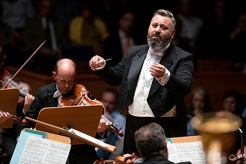 Schon gleich nach der Eröffnung durch das Schlagwerk schaffen die Streicher mit ihrem Sirren eine geheimnisvolle Atmosphäre. Hier hat niemanden die Herbst-Melancholie erfasst. Verwendete man die Musik für einen Film, wäre es vermutlich eher ein Psychothriller als ein Liebesfilm. Immer wieder fallen die Streicher mit ihren kurzen Bogenführungen ein. Dahinter leuchten die unterschiedlichsten Ideen und Einfälle auf. Kleine dissonante Melodien, einzelne kurze Instrumentensoli, aber auch die Dialoge zwischen Oboen und gezupftem Cello sorgen für Beschleunigung und Abwechslung. Es wird eine sehr kurzweilige Viertelstunde. An dieser Aufführung hätte sicher auch Trojahn seinen Spaß gehabt. Denn die Düsseldorfer Symphoniker sind mit Verve und Präzision dabei. Takthilfe gibt Antonino Fogliani, der sich eigentlich eher als Belcanto-Spezialist einen Namen gemacht hat. In der Tat kann man sich seine Art zu dirigieren eher bei L’elisir d’amore oder La Cenerentola vorstellen. Mit Hipster-Bart und ‑Frisur scheint er zudem ein Freund des Mainstreams zu sein. Als Laie vermag man sich nicht vorzustellen, dass die Musiker vor ihm tatsächlich etwas mit den wild rudernden Armen und dem wippenden Körper anfangen können, der sich zudem bevorzugt mit der linken Streichergruppe und den Bläsern respektive kräftigen Einsätzen des Schlagwerks befasst. Aber meistens funktioniert es.