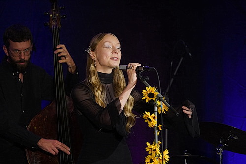 Leléka will damit begeistern, ukrainische Volkslieder im Jazz-Gewand vorzutragen. Und nachdem die Tonpanne infolge eines Kabelbruchs behoben ist, erklingt die ätherische Stimme der Sängerin in voller Pracht. Und so eingängig die Musik auf Anhieb ist: Man fühlt sich ein wenig unbeholfen angesichts der Tatsache, dass man kein Wort versteht. Es ist ja diese andere Welt, die man verstehen will. Nach einem Textheft sucht man vergebens. Zwischendurch gibt es allgemeine Hinweise der Sängerin wie „Jetzt kommen zwei Liebeslieder“. Bei aller Sympathie: Das ist zu wenig. Ziel verfehlt.