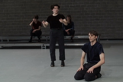 Derweil dürfen die Düsseldorfer sich kopfschüttelnd abwenden, wenn sie in der Vorankündigung einer Compagnie auf der Website des Tanzhauses von „Zeitzeug*in“ und ähnlichem Unfug lesen. Wer weiß, was Zeitzeug ist, möge es für sich behalten oder ein Poesiealbum daraus machen. Vielleicht ist es auch besser, bei solchem Unsinn gleich nach anderen Online-Angeboten zu suchen. Denn dann erspart man sich die ausgesprochen schwierige Auseinandersetzung mit der neuesten Arbeit von Artmann & Duvoisin mit dem eigentlich ansprechenden Titel Umzug in eine vergleichbare Lage. Der zeitgenössische Tanz hat sich immer mit dem Einsatz von Sprache schwergetan, schließlich galt es, Sprache in körperliche Bewegung umzusetzen. Und über viele Jahre gab es zudem die Bewegung, auf Musik zu verzichten, weil sie vom Tanz ablenke. Inzwischen gibt es die vielgeübte Praxis, zumindest im letzteren Fall auf aktuell komponierte Musikfragmente zurückzugreifen, was ja nicht das Schlechteste ist, wenn man auf die Berücksichtigung neuer Kompositionen in der klassischen Musik blickt.