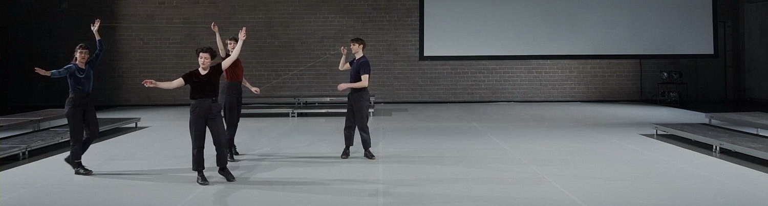 Noch immer scheint die Schockstarre bei den Kulturinstitutionen nicht so ganz überwunden zu sein, sich mit dem Internet statt der Bühne auseinanderzusetzen. Erst wenige Bühnen beginnen damit. Auch im Tanzhaus NRW ist man davon noch weit entfernt. Zwei Kameras mit Zoom-Objektiven, ein paar Szenenwechsel abfilmen und schon ist die Online-Präsentation fertig. Gerade bei dem Stück von Artmann & Duvoisin hätten sich da noch ganz andere Möglichkeiten ergeben. So blickt der Zuschauer auf die nackte Bühne des Großen Saals im Tanzhaus. Rechts, links und mittig sind ein paar Treppenstufen aufgebaut, rechts ist eine Projektionsfläche aufgehängt. Mit der Raumaufteilung gibt es ohnehin Schwierigkeiten. Man hat keinen Moment das Gefühl, die Bühne sei vollständig bespielt. Hätte bei einer Online-Aufführung ja auch gar nicht sein müssen, wenn man nicht ständig die ganze Bühne in den Blick nimmt.