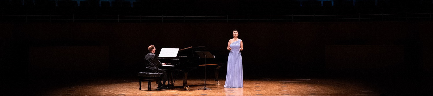 Es ist schon erstaunlich, wer alles in der Romantik so Lieder für die Wiege komponiert hat. Das stellt auch Skigin fest, wenn er eine Anekdote über Richard Wagner zum Besten gibt, nachdem Peretyatko Dors, mon enfant – also: Schlafe, mein Kind – von Wagner vorgestellt hat. Der Professor erzählt von der Zeit, als Wagner in Paris aus seiner Wohnung flog, weil er die Miete nicht zahlen konnte. In seiner neuen Unterkunft, einer Pension, fällt sein Blick auf schwarze Schwäne in den Tuilerien. „Andere ohne Geld, die schwarze Schwäne sehen, sind auch traurig, aber schreiben selten so schöne Werke darüber“, resümiert Skigin und bringt das Instrumentalwerk Ankunft bei den schwarzen Schwänen bravourös zu Gehör. Recht hat er. Und schließt gleich Antonín Dvořáks Dobrú noc, má mila an. Danach kehrt Peretyatko auf die Bühne zurück und intoniert zwei Lieder von Peter Tschaikowsky und Sergej Rachmaninov, von denen letzteres eher nach einem dramatischen Abschiedslied als nach der traulichen Situation am Kinderbett klingt.