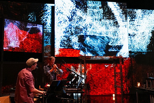 Die von Nina Bonardi entworfene Bühne ist traditionell strukturiert. Dort befinden sich wie gewohnt die Musiker und hinter ihnen ein großer und zwei kleine Monitore. Solch ein ähnlicher Aufbau ist etwa von Steve Reichs Video-Oper Three Tales aus dem Jahr 2002 bekannt. Nur wird man hier nicht mit Handlungen und zugänglicher Musik konfrontiert. Vielmehr sind die visuellen Elemente von abstrakter Natur und die Töne über weite Strecken geräuschhaft-komplex mit dazu im Kontrast stehenden beziehungsweise korrespondierenden Klangeinwürfen. Von einer Video-Oper kann also keine Rede sein. Die Formulierung klangliche Kammermusik einhergehend mit grafischen Animationen könnte eher zutreffen.